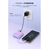 【4台同時充電&パススルー機能】 USB-Cポート、USB-Aポート、Type-Cケーブルとライトニングケーブルを装備し、最大4台のデバイスを同時に充電可能です。パススルー機能も搭載し、モバイルバッテリーとスマートフォンを同時に充電できます。※ご注意:複数の機器を同時に出力する場合、合計出力は15Wとなります。