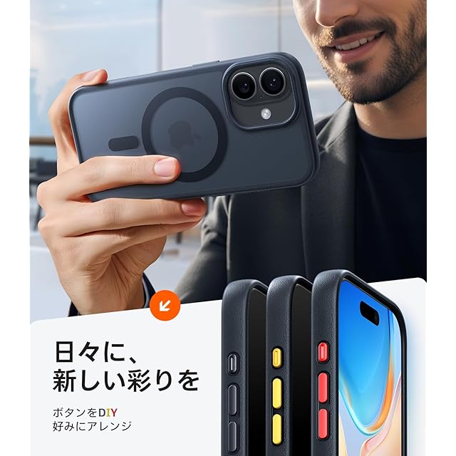 【撮影もカスタムも自由自在!カメラ保護ボタン】カメラコントロールボタンには4層素材を採用し、感度と保護性を両立。日常の撮影も安心で快適です。さらに、多色DIYボタンと下部のストラップホールで、気分やスタイルに合わせて自分だけのスマホケースをデザイン可能。対応機種:For iPhone 17 ケース
