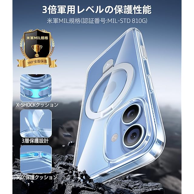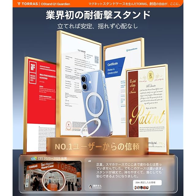 商品名:TORRAS iPhone 17 用 ケース【11年の進化と革新・業界初の耐衝撃スタンド】Magsafe対応 カメラボタン 3倍米軍規格MIL 耐衝撃 急速充電対応 黄ばみなし 指紋防止 滑り止め 6.3インチ「Ostand Q1 Guardian」For あいふおん 17 ケース(クリア)