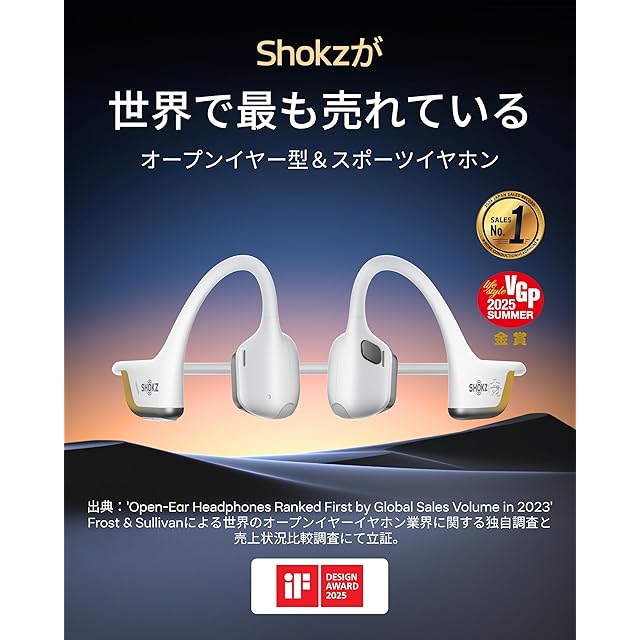 Shokzについて Shokzは、世界的に有名な骨伝導技術を持つオープンイヤーヘッドフォンのリーディングメーカーであり、革新的なデザインと高品質な音響体験を通じて新しいライフスタイルを提案し続けています。 使用シーン Shokzのワイヤレスヘッドフォンは、ウォーキング、通勤、学習、仕事、リモートワーク、会議、スポーツ、ランニング、サイクリング、ヨガ、テニス、ハンズフリー通話、テレコミューティング、ウェブ会議、モバイルゲーム、通勤、リモートワークなど、さまざまなシーンで輝きます。誕生日、新年、クリスマスギフトに最適です。 製品仕様 材料:シリコン、プラスチック、ニッケルチタン合金 Bluetoothバージョン:Bluetooth 5.3 充電時間:60分 1回の充電での使用時間:最大12時間のバッテリー寿命 充電方法:USB Type-C 同梱物 OpenRun Pro 2イヤホン本体*1、収納ケース*1、USB-C充電ケーブル *1、シルバー反射シール *1、書*1、ユーザガイド*1