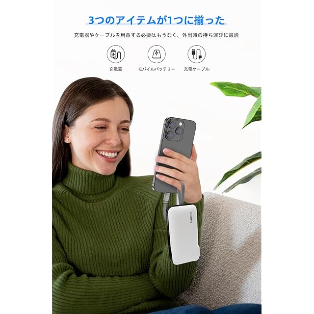折りたたみ式のACプラグを装備し、開いた状態ではコンセントに差し込んで充電器として使用でき、収納すればモバイル充電器として使用できます。