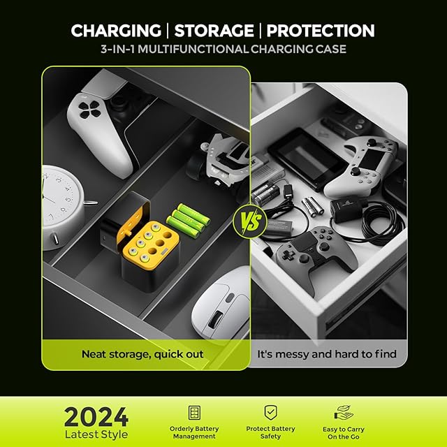 【集積充電と保存】リチウム電池充電器はマグネティックデザインを採用し、8つの独立した充電スロットを持ち、充電と保存を一体化させ、電池の保存と持ち運びをより便利にし、自由に1つ~8つの組み合わせでAAリチウム電池を充電するとサポートします。
