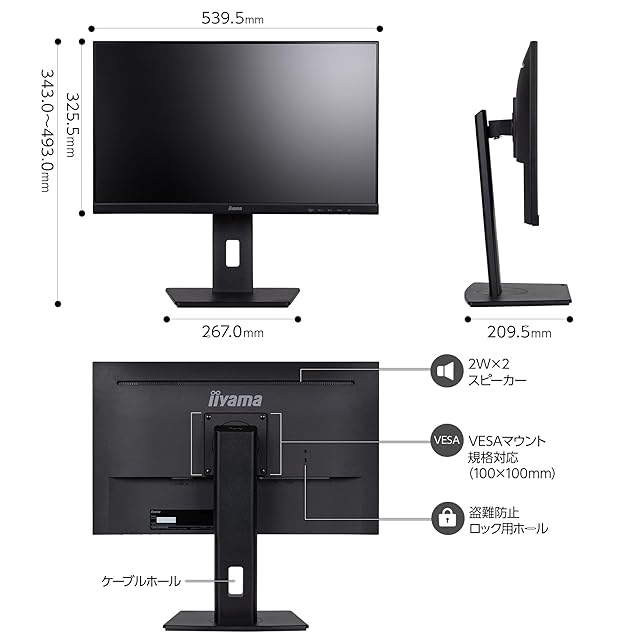 [サイズ]539.5(幅)×343.0~493.0(高)×209.5(奥行)mm/重量:5.1kg(スタンド含む) []5年間メーカー (※LCDパネル、バックライト含む ※の詳細についてはメーカーWebサイトにてご確認ください。) /24時間365日国内サポート