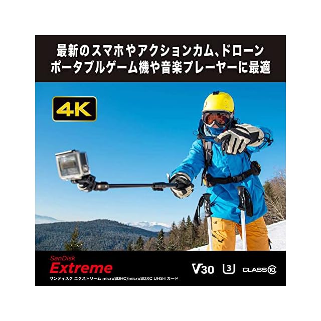サンディスク独自のテクノロジーを用いて最大読取り速度190MB/秒、最大書込み速度130MB/秒のデータ転送を実現 ビデオスピードクラス 30 (V30 )、UHSスピードクラス3( U3 )とCLASS10に対応し、4K動画やフルHD動画に対応