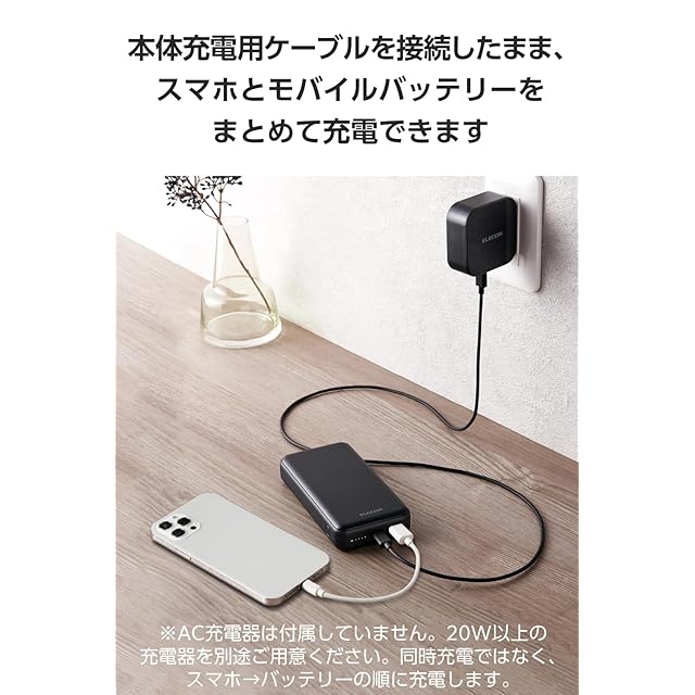 商品名:エレコム モバイルバッテリー 20000mAh 大容量 20W 2ポート USB-C×1 USB-A×1 USB PD対応 【 iPhone 16 15 14 iPad 各種対応】 ブラック EC-C07BK