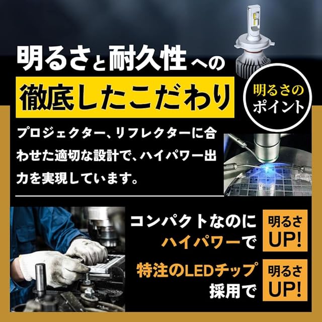 【純正を超える光量と幅広い適合性】 特注のLEDチップを搭載したLEDヘッドライトは、HIDに匹敵する明るさを発揮。ハロゲンからの交換で光量が大幅に向上し、夜間の走行をより安心して行えます。H4、H7、H8/H11/H16、HB3、HB4のバルブ形式に対応し、ヘッドライトだけでなく、ハイビームやフォグランプにも装着可能。さらに車検対応のため、明るさと信頼性を両立しています。