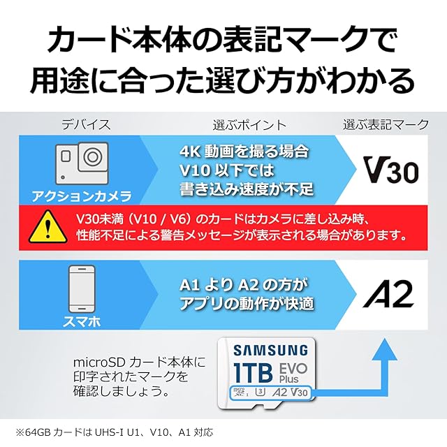 【スピードクラス】Class 10,U3,V30/アプリケーションパフォーマンスクラス : A2