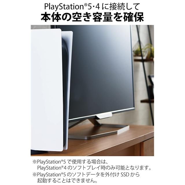 <b>【仕様】</b><br>■対応OS(Windows):Windows 11/10/8.1 <br>■対応OS(mac):macOS Monterey 12/macOS Big Sur 11/macOS Catalina 10.15 <br>■対応ゲーム機:PlayStation(R) 4、PlayStation(R) 4 Pro、PlayStation(R) 5 ※PlayStation(R) 5のソフトデータは拡張ストレージから起動できません。 <br>■対応機種:SHARP/AQUOS、SONY/BRAVIA、REGZA、Panasonic/VIERA・DIGA、Hisense、LG Electronicsなどのテレビ・レコーダー <br>■インターフェイス:USB3.2(Gen2,Gen1)/USB3.1(Gen2,Gen1)/USB3.0/USB2.0 <br>■コネクタ形状:USB3.2-A <br>■容量:250GB <br>■データ転送速度:読み込み:最大500MB/s、書き込み:最大480MB/s ※USB3.2(Gen2)でご使用になるには、機器側がUSB3.2(Gen2)に対応している必要があります。 <br>■セキュリティソフトウェア対応機種:Windows 11/10/8.1が動作するWindowsパソコン、およびmacOS Monterey 12/macOS Big Sur 11/macOS Catalina 10.15が動作するMac <br>■外形寸法:幅約67.3mm×奥行約22.1mm×高さ約9.5mm <br>■重量:約15g <br>■電源:USBバスパワー <br>■カラー:ブラック <br>■期間:1年間<br><br><b>【説明】</b><br>■キャップレスでキャップを紛失する心配がなく、スムーズにスライドできる機構のスライド式外付けSSDです。 <br>■重さ約15g、幅約67.3mm×奥行約22.1mm×高さ約9.5mmというコンパクトさで、持ち運びや収納にも便利なUSBメモリサイズです。 <br>■読み込み最大500MB/s、書き込み最大480MB/sの高速データ転送を実現しています。 <br>■USB3.2(Gen1)/USB3.1(Gen2,Gen1)/USB3.0/USB2.0への下位互換が可能で、そのまま接続できます。 ※USB3.2(Gen2)でご使用になるには、機器側がUSB3.2(Gen2)に対応している必要があります。 <br>■シャープ(アクオス)、ソニー(ブラビア)、レグザ、パナソニック(ビエラ・ディーガ)、ハイセンス、LGエレクトロニクスなどのデジタルテレビに接続可能です。 <br>■最新テレビ機種との対応情報は、エレコムホームページにて随時更新しているため、QRからすぐに確認ができます。 ※ただし、テレビがUSB-HDD録画に対応している必要があります。 <br>■テレビやレコーダーに接続することで、番組の録画や2番組同時録画などのさらに便利な機能もご利用いただけます。 ※機能の詳細、対応可否はテレビ側の仕様に依存します。 <br>■PlayStation(R) 4、PlayStation(R) 4 Pro、PlayStation(R) 5に接続し、ゲームデータを外付けSSDに保存することで、ゲームの起動時間やセーブデータのロード時間が短縮され、より快適なゲームプレイが可能です。 <br>■PlayStation(R) 5に接続し、PlayStation(R) 5のゲームデータを外付けSSDに保存することで、本体ストレージの空き容量を確保できます。 ※PlayStation(R) 5で使用する場合は、PlayStation(R) 4のソフトプレイ時のみ可能となります。 ※PlayStation(R) 5のソフトデータを外付けSSDから起動することはできません。 <br>■期間を「1年間」としていますので、安心してご利用いただけます。 <br>■衝撃や振動によって破損しやすいディスク駆動部品がないため、高い耐衝撃性能と耐振動性能を兼ね備えています。