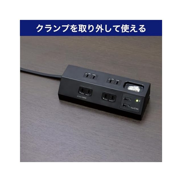 商品名:エルパ(ELPA) 卓上電源タップ USB付き クランプ固定 集中スイッチ 雷ガード付き WLS-DS4232SUA(BK)