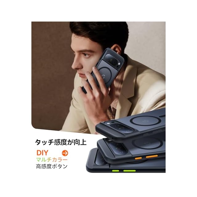 商品名:TORRAS Google Pixel 10 / Pixel 10 Pro 用 ケース【米軍規格・Magsafe 対応】 衝擊吸収 ワイヤレス充電対応 半透明 黄変防止 防指紋 防滑 エアバッグクッション 搭載マグネット カラー交換可能ボタン Guardian-Mag ブラック