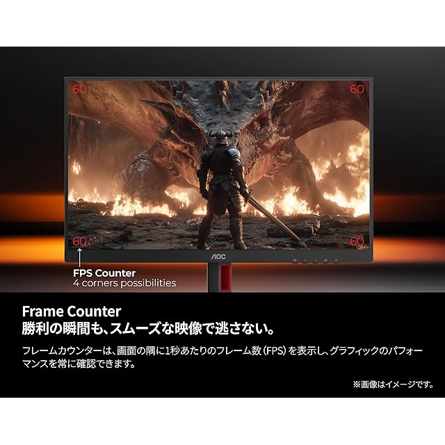 【ゲームカラー】 輝度や色階調をゲームに合わせてできめ細かく調整が可能、ゲームに合わせて最適な調整にすることができる機能です。【Dial Point】 画面中央に照準を表示し、より的確に的を狙うことができる新機能。FPSユー ザーには心強い機能です。【USB機器の入力速度向上機能「Low Input Lag」 (表示遅延読み込み機能)】 マウスやキーボード、アーケードコントローラーなどのUSB機器からの入力遅延を抑制することで、より思い通りのプレイ を実現し、快適なゲームプレイを可能にする機能です。【AOCについて】 リフレッシュレート144hz以上ゲーミングモニター世界において、2019~2024年で6年連続年間販売台数TOPシェアを記録。多くのゲーマーに選ばれたトップクラスのゲーミングブランドです。(出典:IDC)