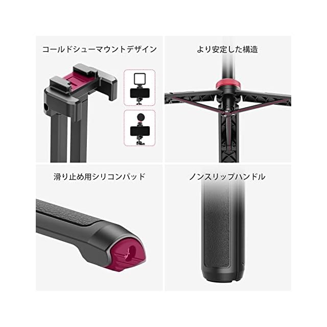 【2in1スマホ三脚&様々な用途に使用】MT-44スマホ三脚には、2in1隠れのスマホホルダーが付属されており、別のスマホホルダーを搭載いらないで、コルドシューも付けて、Vlog用のラジオを追加することができます。またはLEDビデオライトを搭載できます。隠れのスマホホルダー、vlogにとってより便利です。