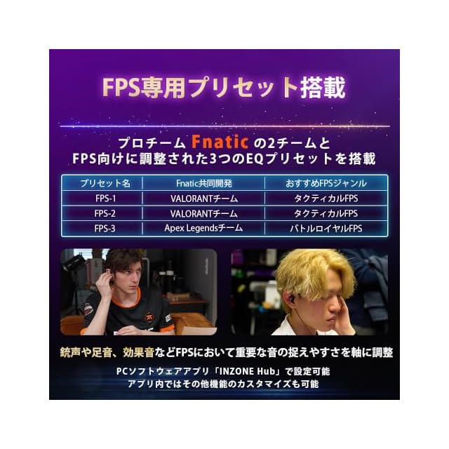 プロeスポーツチームFnaticと共同開発,競技パフォーマンスを最大限発揮するプロのためのゲーミングヘッドホン<br> Fnatic共同開発のFPSに特化したEQプリセット搭載