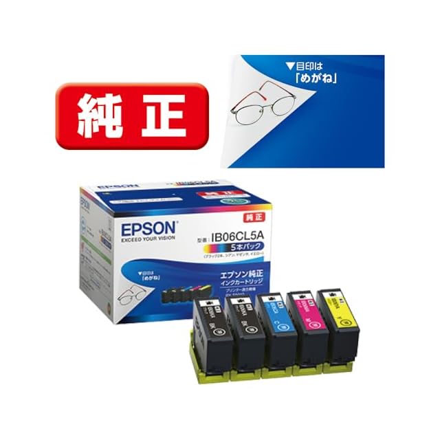 商品名:エプソン 純正 インクカートリッジ メガネ IB06CL5A 5本パック ブラック2本入り