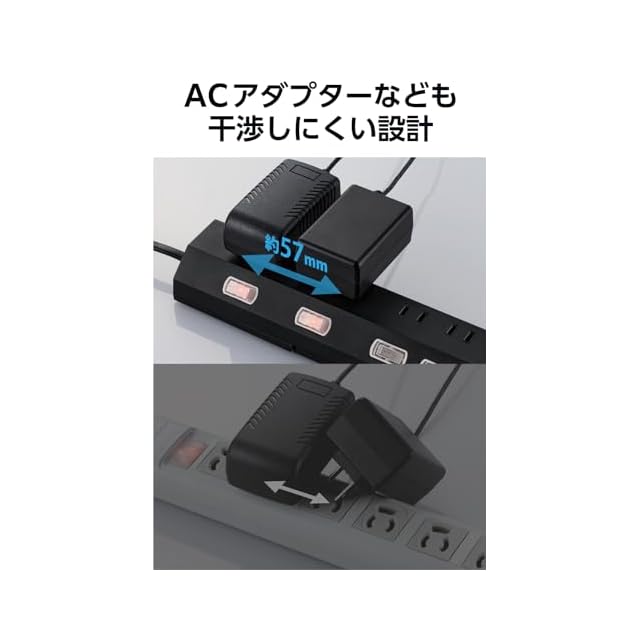 商品名:エレコム 電源タップ 雷ガード 6個口 2m マグネット 【吊下可能な回転パーツ付き】ホコリ防止シャッター付き 極性プラグ対応 スイングプラグ 個別スイッチ ブラック ECT-2820BK