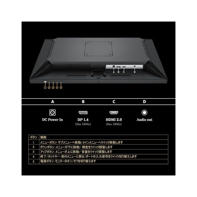 【多様な接続端子】最新の接続規格に対応!HDMI2.0(1980*1080@180Hz) とDP1.4(1980*1080@180Hz)で、このゲーミングモニターがスムーズな映像を体験可能。さらに、ヘッドホン端子も完備し、臨場感あふれるサウンドを楽しめます。
