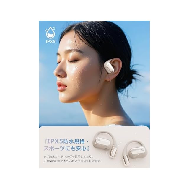 【IPX5防水仕様・スポーツシーンでも活躍】IPX5の防水機能を備えた「K6」OWSイヤホンは、日常的な雨や汗に対して耐性を持ちます。これにより、ランニングやアウトドアでの活動など、激しい運動や湿度の高い環境でも安心して使用することができます。それに、湿った布での拭き取りなど、簡単なお手入れも可能です。*運動後に多量の汗をかいた際は、イヤホン表面の汗などを拭き取ってから、充電ケースに戻してください。