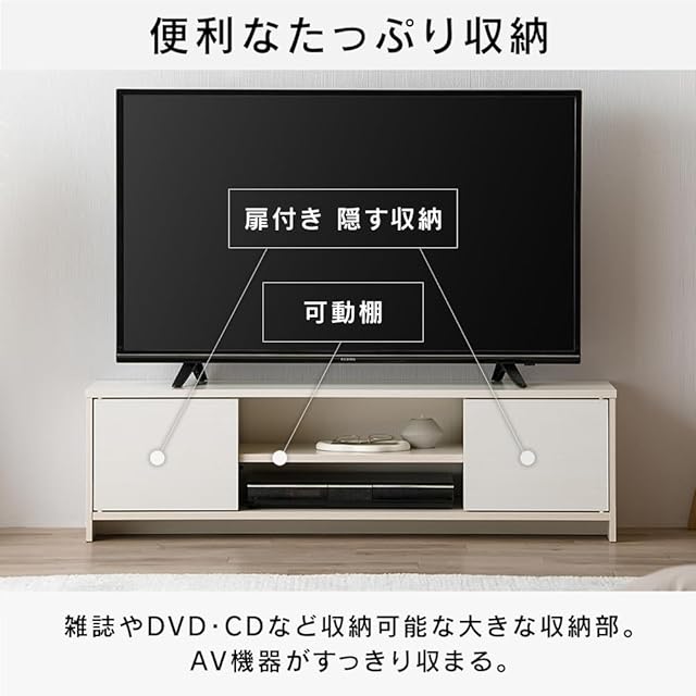 ワンルームにもちょうどいい、最大47インチのテレビに対応。※設置するテレビの脚サイズをご確認の上ご使用ください。