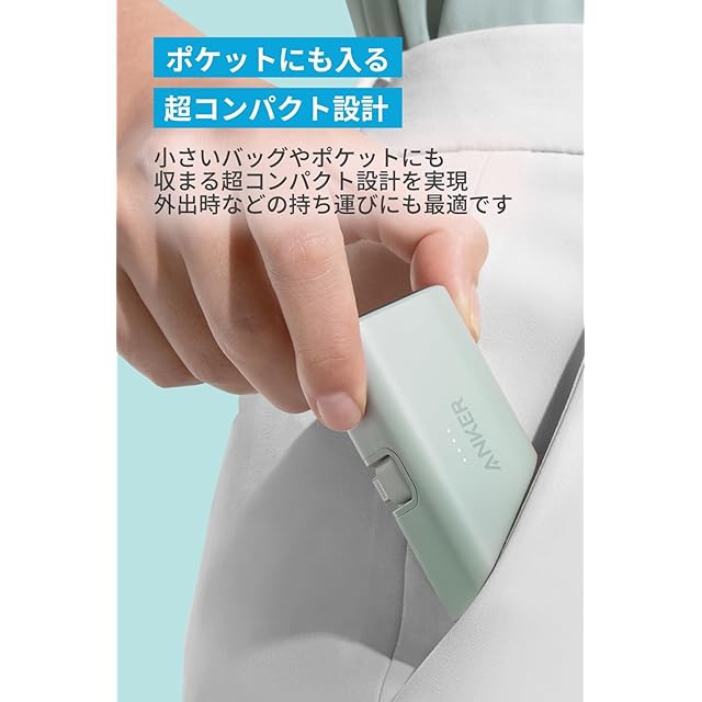Anker Nano Power Bank (12W, Built-In Lightning Connector) (モバイルバッテリー 5000mAh 小型コンパクト)【MFi認証済/PowerIQ搭載/ライトニング端子一体型】 iPhone 14 / 13 / 12 シリーズ (グリーン)