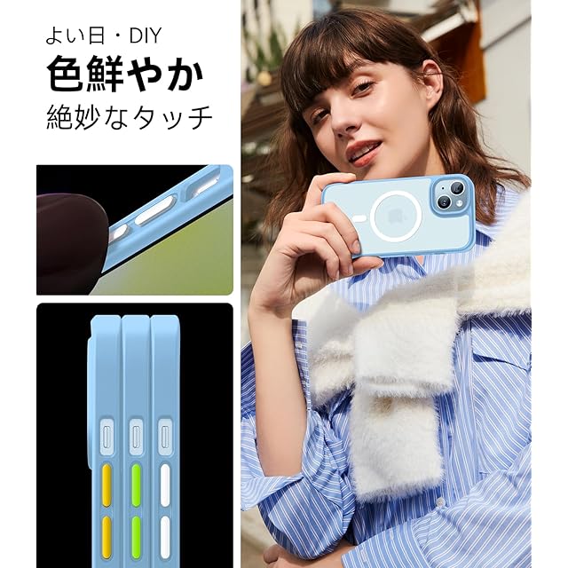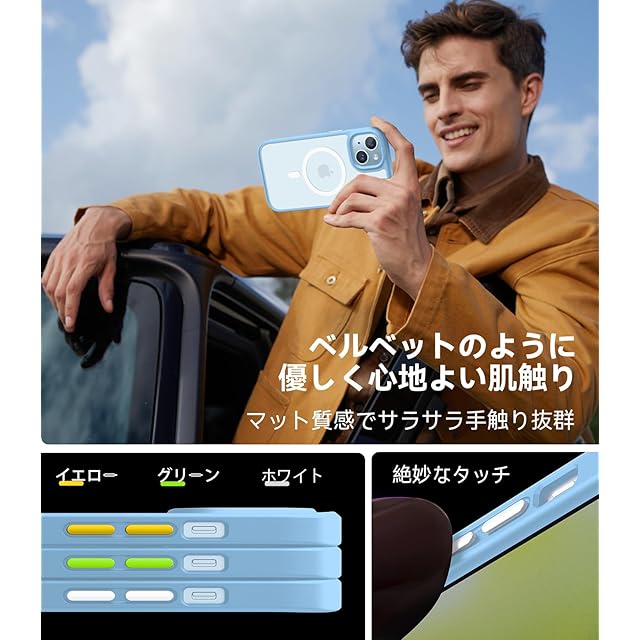 商品名:【米軍規格・Magsafe対応】TORRAS iPhone 15 用 ケース 耐衝撃 マグネット搭載 ワイヤレス対応 半透明 マット 黄ばみなし ストラップホール付き アイフォン 15 用 カバー Guardian-Mag ライトブルー