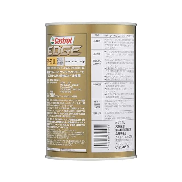 商品名:Castrol(カストロール) エンジンオイル EDGE 5W-30 LL ACEA C3 1L 4輪ガソリン/ディーゼル車両用 全合成油