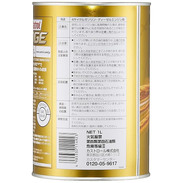 商品名:Castrol(カストロール) エンジンオイル EDGE 5W-40 API SP, ACEA A3/B4 1L 4輪ガソリン/ディーゼル車両用 全合成油