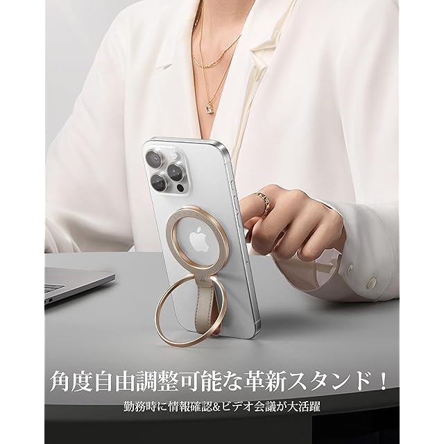 商品名:【2025高級牛革製 MagStand Pro】Andobil スマホリング Magsafe マグセーフ リング 革【横縦両立機能特化&超強磁力&牛革素材】バンカーリング 両面 マグネット スマホ リング 角度調整可能 簡単着脱 マグネットリング 薄型 高級合金素材 携帯リング 磁石 iPhone 17 16 15 14 13 12 Pro Max Air Androidに対応 エレファントグレー