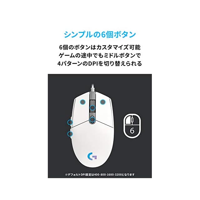 商品名:Logicool G ゲーミングマウス G203 有線 ゲーミング マウス USB 接続 G203-WH 軽量 85g LIGHTSYNC RGB 6個プログラムボタン ホワイト PC windows mac 国内正規品 【 ファイナルファンタジー XIV 推奨モデル 】
