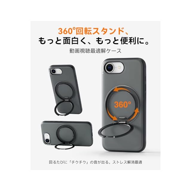 【360°回転・使用体験更なる高みへ】卓越した360°リングデザインで、従来の限界を打ち破り、iPhone 16eの使い心地を高めます。2025 年更新されたこの内蔵スタンドは、カチカチとした音が回転ごとに小さな達成感をもたらし、回転がストレス解消につながります。また、好みの角度にしっかり固定できるため、動画鑑賞時の快適さが大幅に向上します。動画鑑賞する際に、夢のような映像を楽しみながら、自宅に別の世界を創り出します。さらに、360リングスタンドがあれば、片手操作がスムーズになり、好きな場所に設置して自動撮影にも活用できます。外出先でのトキメキ瞬間を捉えるのにも便利で、出会ったあらゆる美しい瞬間を簡単に記録できます。