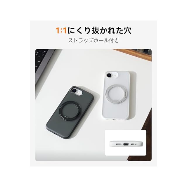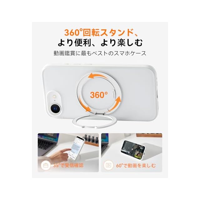 商品名:TORRAS iPhone 16e 用 ケース【動画視聴用スタンドケース】多機能一体360°回転スタンド 2025 半透明 耐衝撃 マット感 黄ばみなし レンズ保護 ストラップホール付き Magsafe対応 ワイヤレス充電対応 スマホケース ドット模様 iPhone16e 用カバー 6.1インチ 「Ostand O3 Fitness」純白(ホワイト)