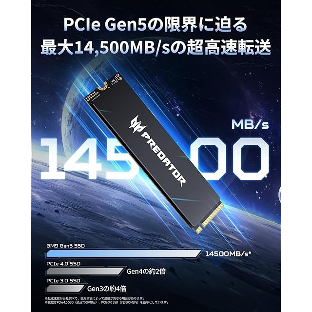 商品名:Acer Predator Gen5 M.2 SSD 1TB GM9 NVMe2.0 2280 PCIe Gen5×4 超高速 14500MB/s 最大読み取り速度 内蔵SSD 高耐久 3D NAND TLC メーカー5年