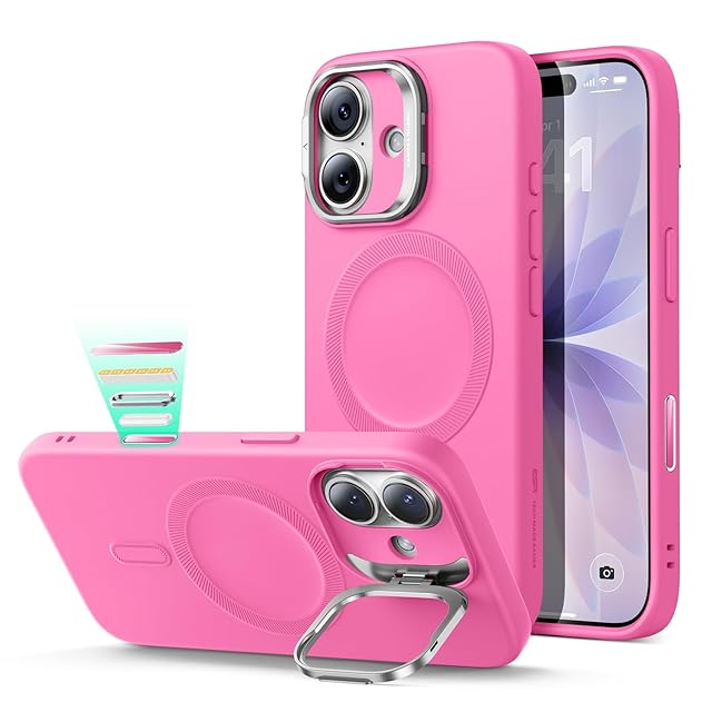 商品名:【デザイン受賞シリーズ!】ESR iPhone 17 ケース MagSafe対応 カメラボタン付き 隠しスタンド 調整可能 3倍米軍MIL規格 ワイヤレス充電対応 エアガードコーナー 耐衝撃 傷防止 軽量 スマホケース 高級柔らかな素材 雲のような肌触り いphone17ケース アイフォン17専用Cloudシリーズ(ピンク)