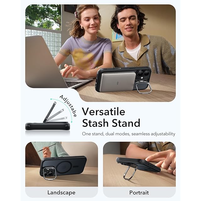 【受賞デザインスタンド!視聴も配信も自在】「スタンドケース、便利だけど邪魔じゃない?」いいえ、このスタンドは隠蔽式です!必要な時だけに出し、縦位置・横位置を自由自在に調整可能で、YouTube視聴はもちろん、TikTokやInstagramの縦長動画のライブ配信にも最適です。この独創的なデザインは、フレンチデザインアワード2024ゴールド賞を受賞しました!スタンドを使いながら同時にMagSafe充電もでき、革命的な便利さです