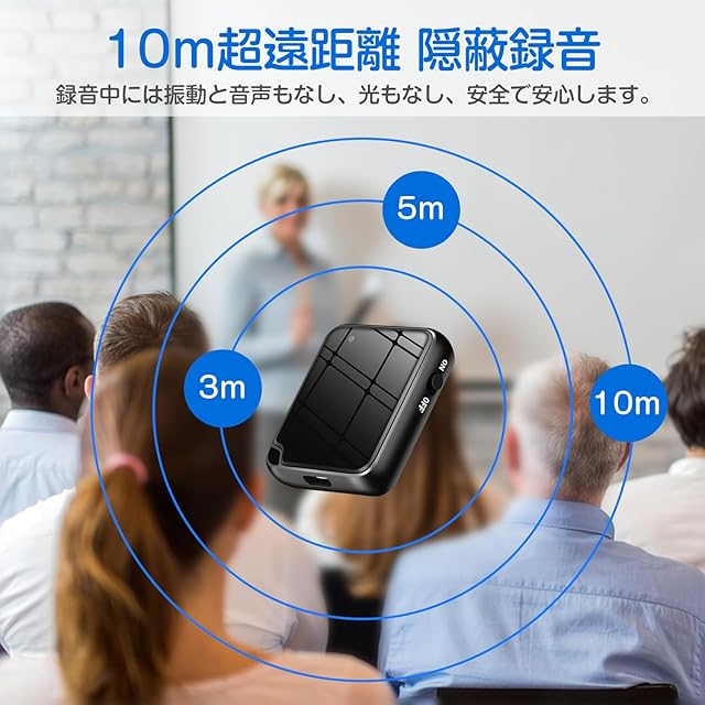【10m超遠距離録音】高感度音声センサーモジュールのマイクを内蔵され、10m位の距離でも録音できます、大教室、ホール、会議やセミナーでの利用し、インタビューでの録音、個人用のボイスメモなど、さまざまなシーンで利用されています。