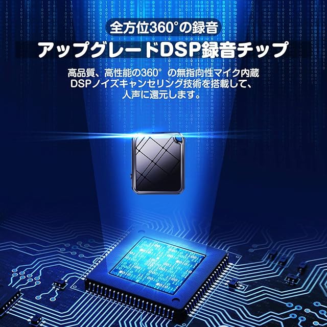 【高音質、全方位360°録音&音声感知機能】最高192kbpsの音質の録音ができ、先端なノイズカット技術を搭載しているので、非常に明瞭な記録ができます。高品質、高性能の無指向性マイク内蔵DSPノイズキャンセリング技術を搭載し、クリアな音声を再生できるので、資料作りなど作業する時に、とても便利です。360°音声感知の自動録音機能を搭載して、音声を感知すると操作なしで自動録音を開始し、音声がなくなると自動で録音を停止しデーターを保存します。長時間の会議においても容量が無駄なくなります。