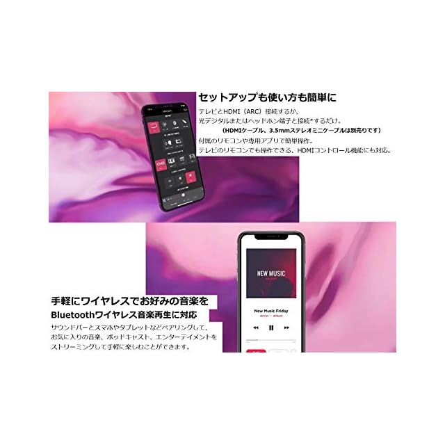 Bluetoothワイヤレス音楽再生に対応、専用アプリ「Sound Bar Remote」による操作が可能
