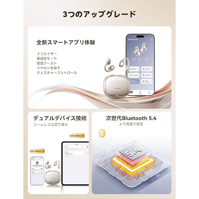 商品名:JOYROOM イヤーカフ型イヤホン オープンイヤーイヤホン ワイヤレス Bluetoothイヤホン 13mmダイナミックドライバー 左右チャンネル自動認識 全表面タッチでき マルチポイント接続/最大22時間再生/Bluetooth5.4/専用アプリ/IPX4防水 4.9g超軽量 人間工学L型設計 究極のフィット感 耳挟み式 耳を塞がない 開放型 マイク付き 音漏れ防止