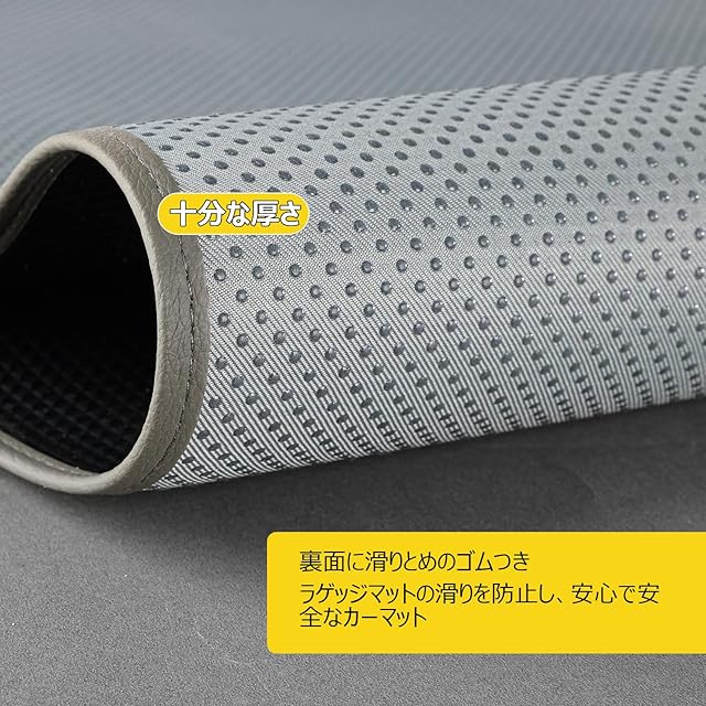 【防水仕様】KYG ラゲッジマットは高品質の厚手の合成PVCで作られいるので、しっかりして耐久性もそろえています。また、防水仕様なので、汚れても水拭きができ、水をこぼしてもトランク内が濡れない。(PVC生地を採用しており、人によって若干異臭がすることになります。二三日の干したら、匂いがなくなります。)表面は凹凸の設計で、物件を置いてもずれにくいです。