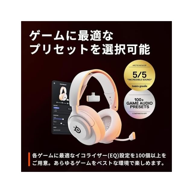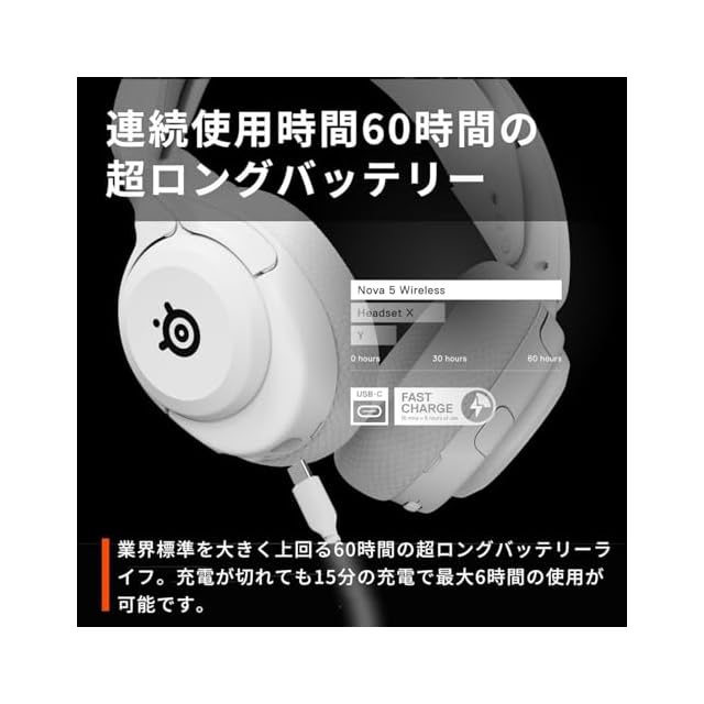 SteelSeries ワイヤレス ゲーミングヘッドセット Arctis Nova 5 white モンスターハンターワイルズに最適なイコライザー設定 ヘッドホン 軽量 無線 ワイヤレス Switch/Switch2/PC/PS5/PS4 対応 急速充電 60時間連続使用可能 調整可能 国内正規品 メーカー1年 61671 ホワイト