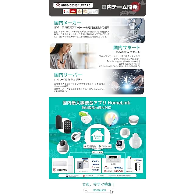 【国内メーカー × 国内サーバー × 国内サポートで安心】 LinkJapan は創業2014年から開発・運営を日本国内で行い、高い信頼性を備えたIoT機器・サービスを提供しています。 アプリ内のデータは、暗号化された通信とセキュリティ性の高い国内サーバーを経由するため、プライバシー保護も万全。また、カスタマーサポートは国内専門チームが丁寧にご案内。初心者から上級者まで安心してご利用いただけます。 ★サポート体制 【Mail: [email protected]】 【LINE ID: @515wljtu】 受付時間:毎日10:00〜19:00(土日祝も対応、一部祝日を除く) 【メーカー】ご購入日から1年間
