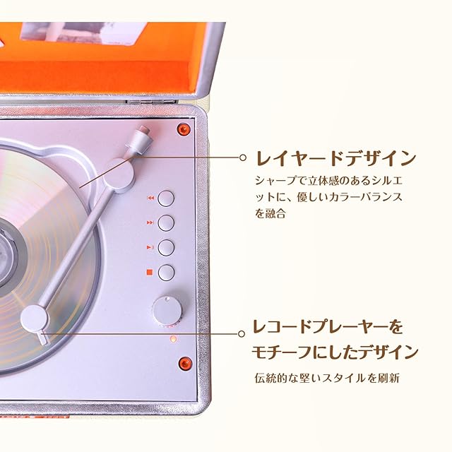 【多機能CDプレーヤー & ワイヤレス接続】CD再生に加え、AUX入力、ヘッドフォン出力にも対応。ワイヤレスで接続し、デバイスから音楽を直接受信・再生可能。