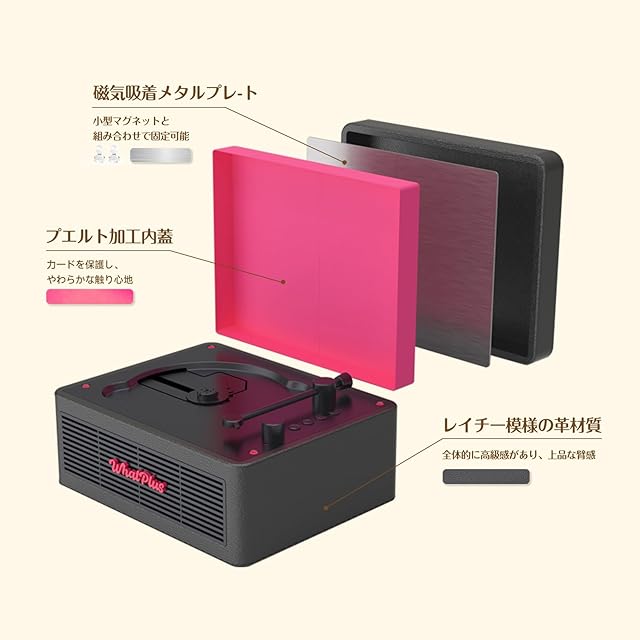 商品名:WhatPlus CDプレーヤー ワイヤレス対応 スピーカ内蔵 2000mAhバッテリー搭載 デスク イヤホン/AUX-IN/TFカード ストレス解消 (ブラック&ピンク)