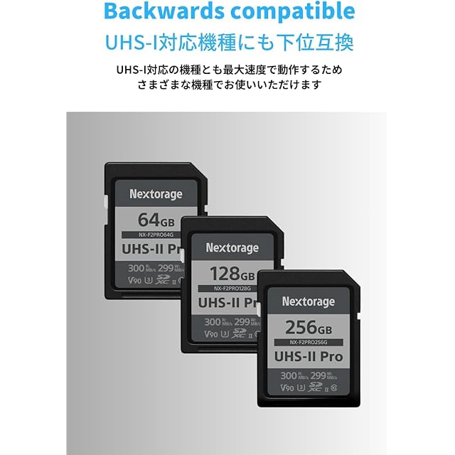 商品名:Nextorage 日本メーカー UHS-II V90 256GB SDXC SDカード 最大読出し速度300MB/s 最大書込み速度299MB/s 高性能pSLCフラッシュメモリ搭載 高速連写 4K/8K録画 NX-F2PRO256G ネクストレージ メモリカード