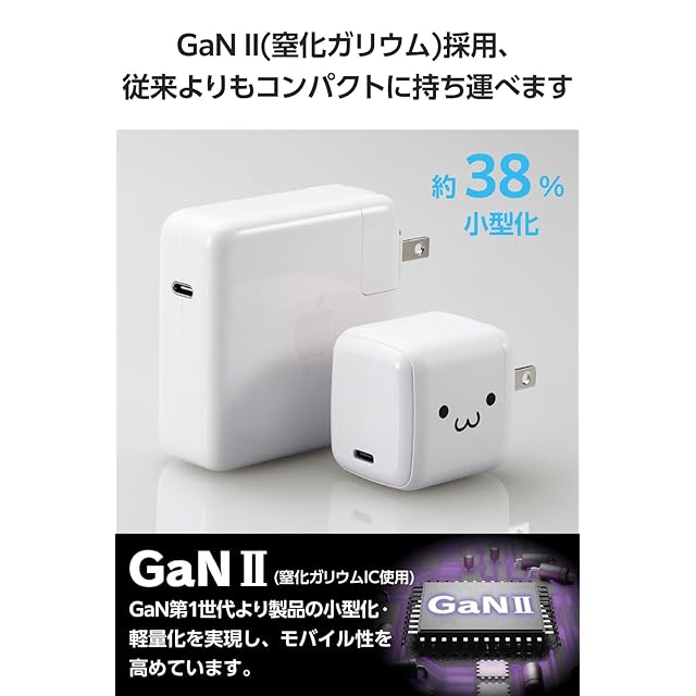 商品名:エレコム 充電器 65W USB PD対応 小型 Type-C 1ポート PPS対応 GaN II採用 PSE認証 しろちゃん(ホワイト×ブラック) 【iPhone 16 15 iPad Macbook 等対応】 EC-AC8565WF