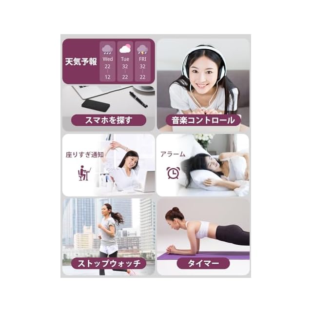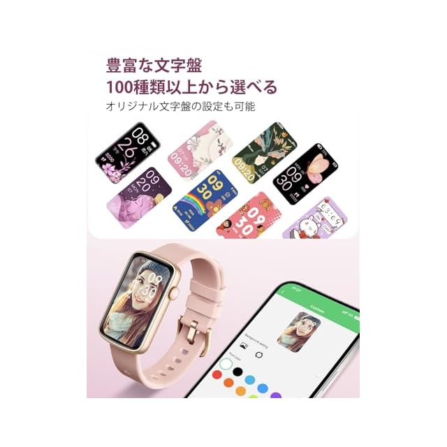 「100+文字盤·座りすぎ通知·生理周期」スマートウォッチ本体に5つの文字盤を搭載。専用アプリで100以上の文字盤をダウンロードできるだけでなく、アルバムや撮影により、お気に入りの写真を文字盤に設定することもでき、毎日気分に合わせたスタイルを楽しめます!専用アプリで座り過ぎのリマインダーの時間帯や間隔を自由に設定し、日常生活に無理なく取り入れられます。体を動かすタイミングを見逃しません。さらに、女性の生理周期を記録する機能では、アプリで生理周期の開始日と終了日を記録することで、次回の予想月経日や排卵日などを予測することができます。