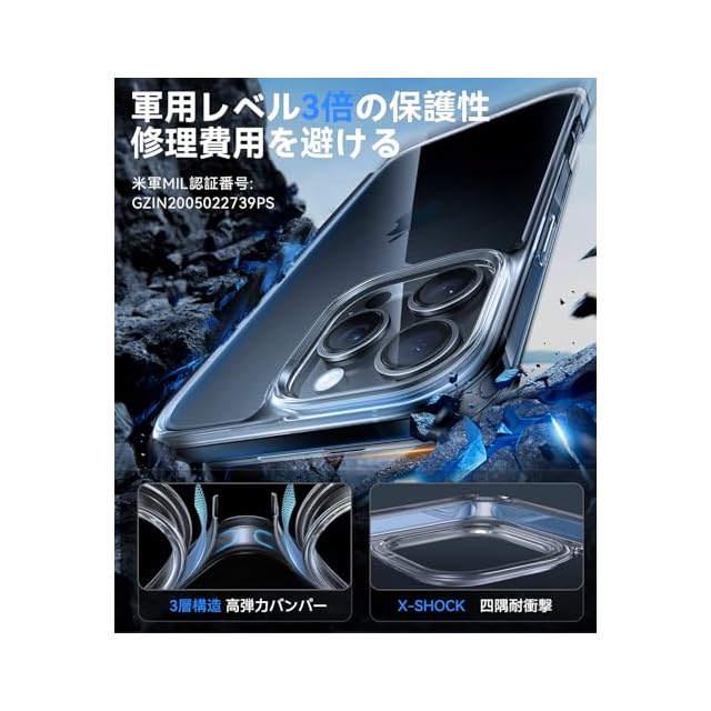 【2025アップグレード・軍用レベル保護力】iPhone 16 Pro用の ケース! 堅牢性には徹底的にこだわって開発しているケースが、特許全面保護システムが年々更新し、高い耐衝撃性を誇り、3Mの高さ、26回、それぞれ違う角度でコンクリートに落下させても本体は綺麗に無傷!スマホを守り抜く万全の備え! 「米軍規格認証番号:No.GZIN2005022739PS」