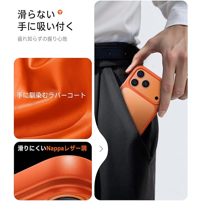 商品名:【3倍米軍MIL規格・マット質感】 TORRAS For iPhone 17 Pro Max ケース 耐衝撃 半透明 マット仕上げ 滑り止め 黄ばみ防止 指紋防止 カメラコントロール保護 ストラップホール付き ボタン付属 For いphone17Pro Max ケース 6.9インチ 「Guardian」 オレンジ