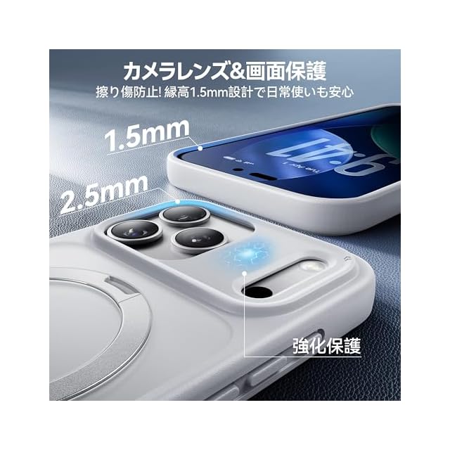 【スゴすぎる!多機能スタンド】MagicStandシリーズのケースは、横向き・縦向き両方で使用可能なスタンド機能を備え、MagSafe対応の無損充電にも対応しています。リング型デザイン、持ち運びも簡単です。スタンド機能は角度調整が自由にできるため、日常のドラマ視聴、動画閲覧、オンライン会議、セルフィー撮影など、さまざまなシーンに対応します。スタンドは強化ヒンジ構造と航空機用アルミ合金素材で設計されており、開閉はスムーズで変形や破損しにくく、45,000回以上の開閉テストでも安定性は変わりません。耐久性は従来のスタンドの約10倍。どんなシーンでもスマホをしっかり支え、日常生活で両手を完全に解放し、快適で便利な使い心地をお楽しみいただけます