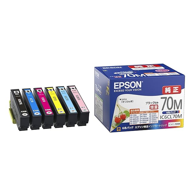 商品名:エプソン 純正 インクカートリッジ さくらんぼ IC6CL70M 6色パック ブラックのみ増量