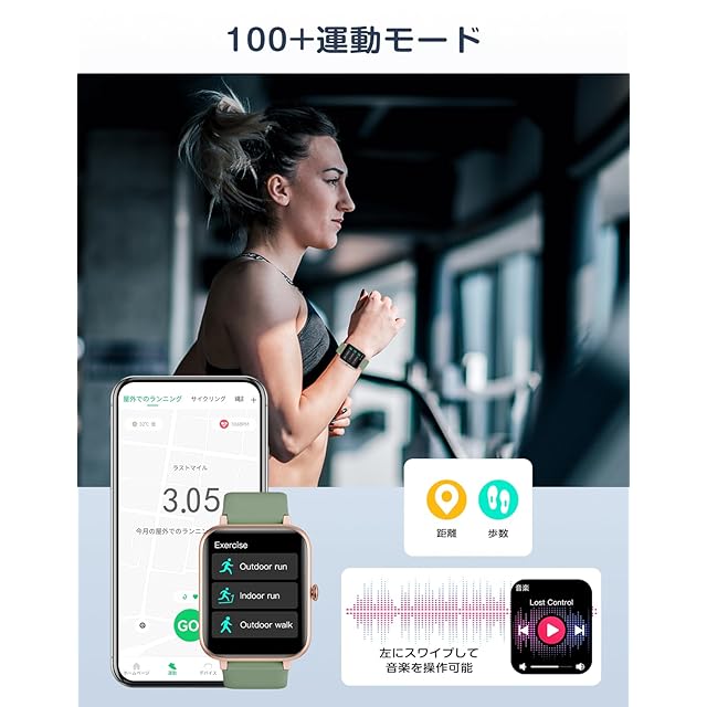 【100種類以上の運動モード&IP68防水防塵】 様々なニーズに応えるため、スマートウォッチには100種類以上の運動モードが搭載されており、一般的な運動のほとんどをカバーしています。運動モード中に音楽コントロールにアクセスすることができ、音楽を聴くのが好きなスポーツマンにおすすめです。毎日の運動データを専用アプリに同期させ、過去のデータをもとにその後の運動スケジュールを調整・計画するのに役立ちます。毎日の成果が一目でわかり、運動による達成感をを楽しめます! IP68等級の防水・防塵性能を備え、防水機能は2m以内の冷たい水中でも作動しますので、 水泳や雨の日、手洗いなども問題ありません。 温水、海水、温水、サウナ、2mを超える水など高温、高圧、腐食性の環境では時計が破損しますのでご注意ください。